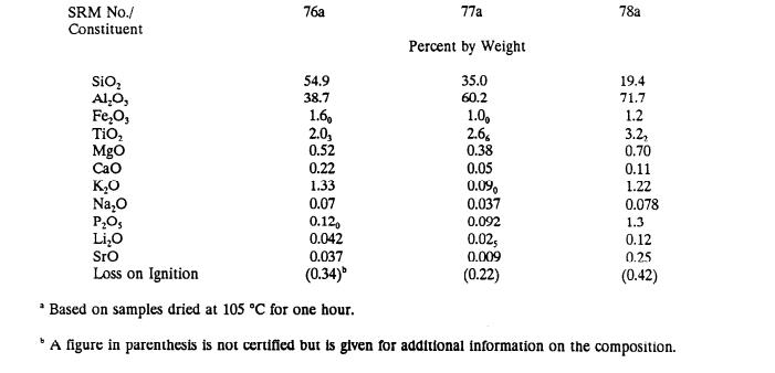 SRM 78A 燃燒耐火材料(鋁)203-70%(標準品)呈細粉(<0.15 mm)的形式,打算用于檢驗化學分析方法和用儀器分析方法進行校準。