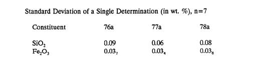 在NIST用K.M.薩彭菲爾德對每一批主要組分SiO、Fe、O、O的代表樣品進行了均勻性檢驗。